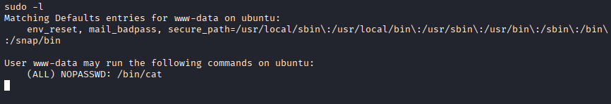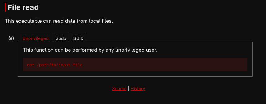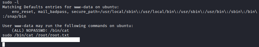 Seems that we can abuse the cat command to read the contents of the root.txt file. I then check GTFOBins and used this.