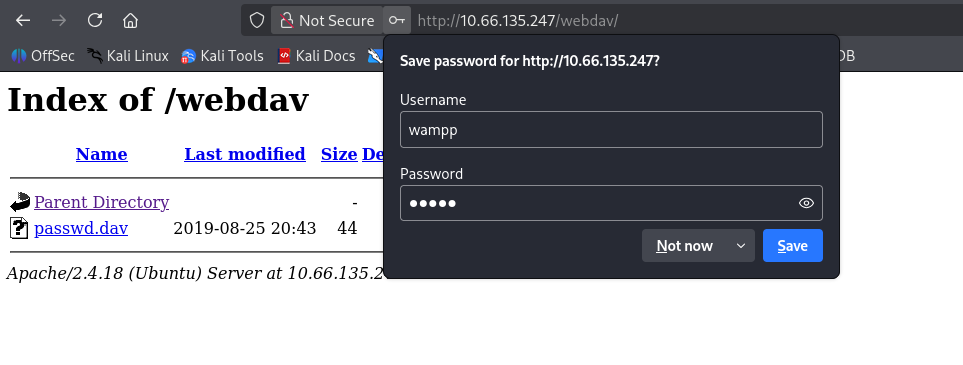 When accessing it, it seems that it presents you with a login pop up. I have no clue what Webdav was so I did a quick Google search. I found that there are many vulnerabilities. Here is one of the results that caught my eye: https://www.exploit-db.com/exploits/18367