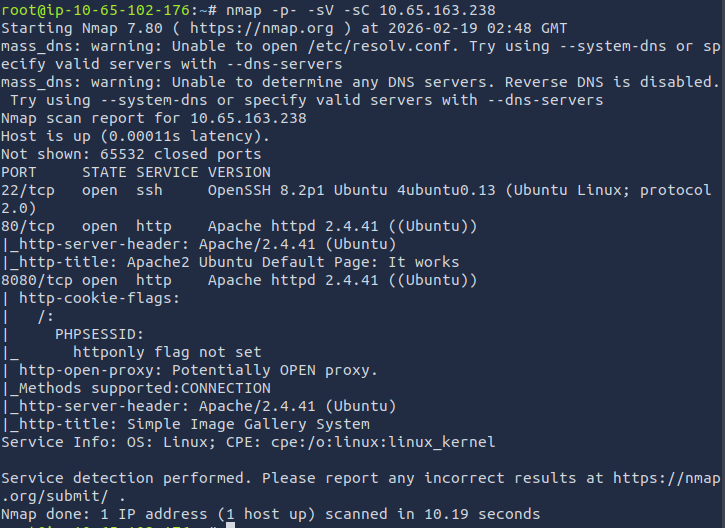 We can see that there are three ports that are open: 22, 80, and 8080