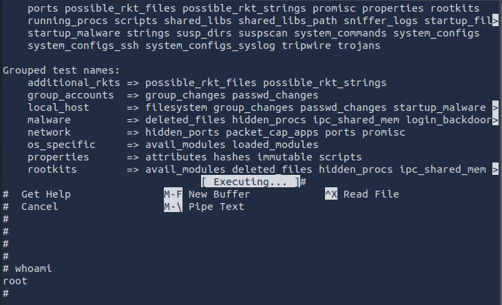 /usr/bin/rkhunter --list;;